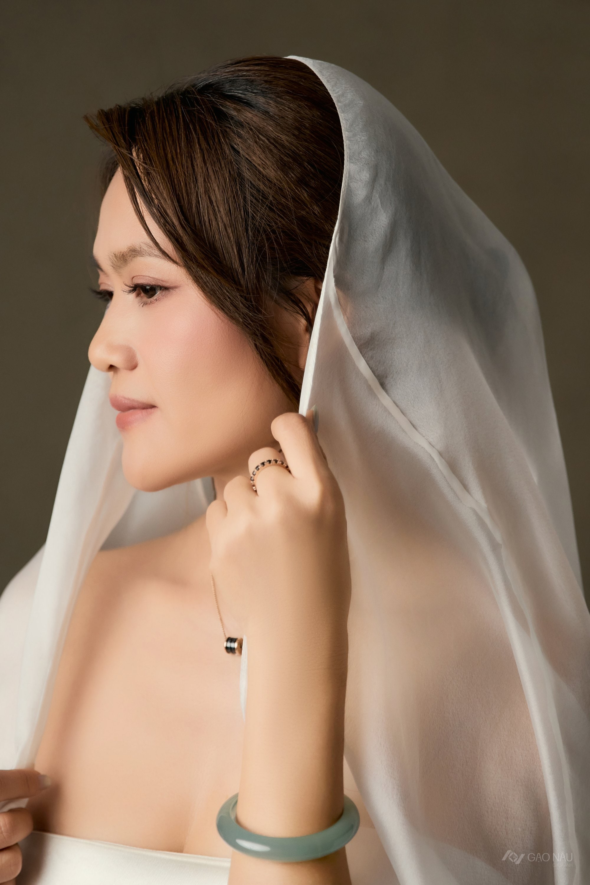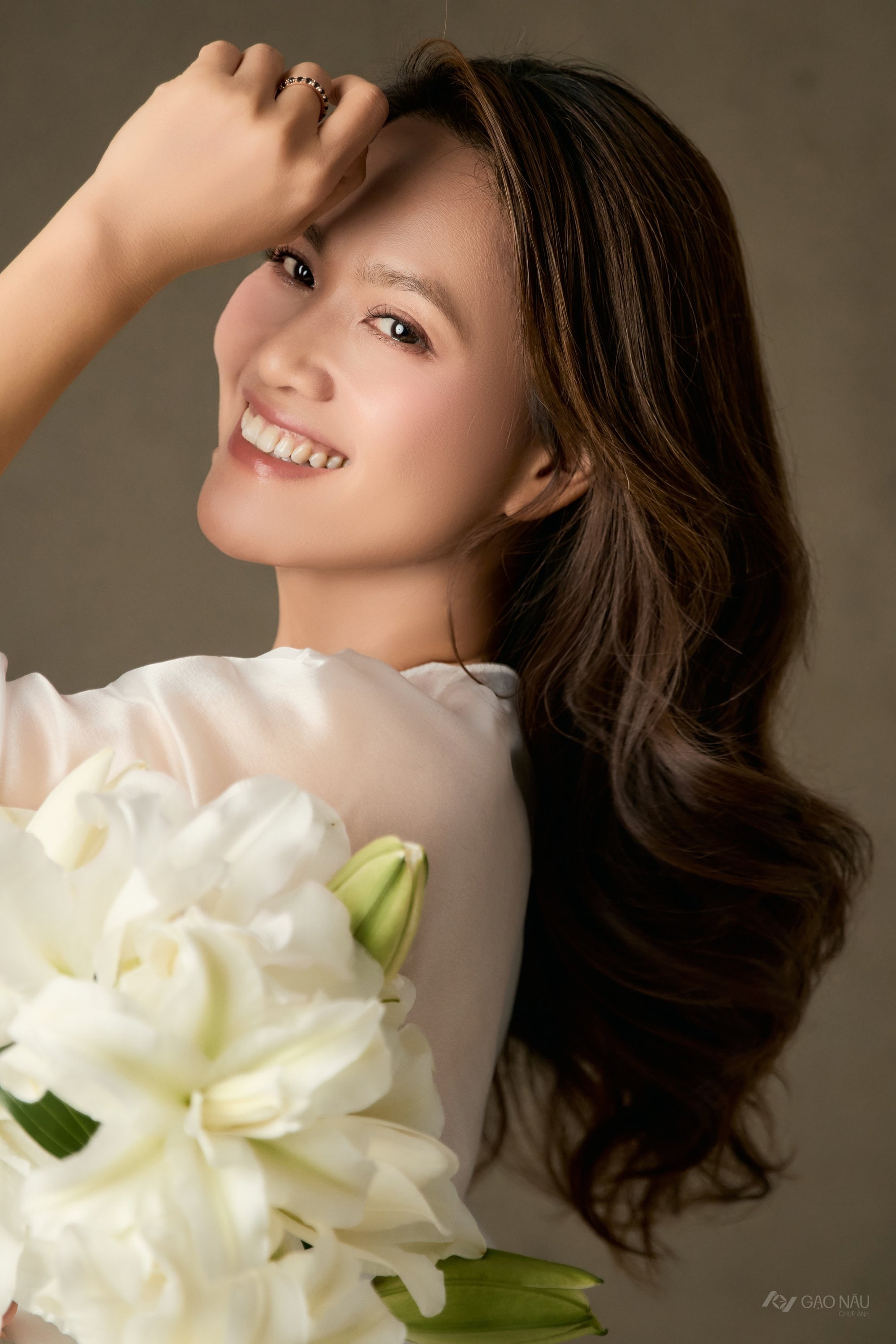 Tấm chị nhớ lâu nhất là tấm nhắm mắt. Trong ảnh chị không cười, không pose. Chỉ là một người phụ nữ đang mệt, ôm bó hoa, đang nghỉ.