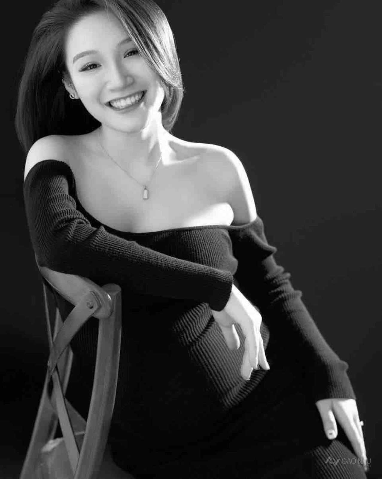 Chân dung mẹ bầu đen trắng, nụ cười rạng rỡ trên nền tối, tôn vẻ đẹp cận cảnh của thời khắc mang thai.